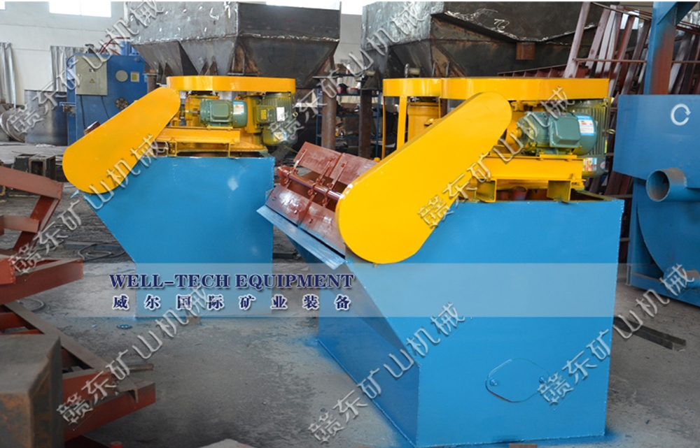 XJK型漂浮选矿机是我国使用较为普遍的一种漂浮选矿机。这种漂浮选矿机的构造如图6—34所示。一般四个槽子配成一组,分为吸入槽(有吸浆管22)与直流槽(无吸浆管)。漂浮选矿机工作时,电机通过皮带轮19和13带动主轴3旋转,叶轮5随主轴3一同旋转。这样在盖板7和叶轮5之间形成局部真空区(负压区),空气由吸气管11经空气筒22被吸人,同时矿浆经吸浆管22被吸入,矿浆与空气混合后借叶轮旋转所产生的离心力,矿浆中的空气...[詳情]