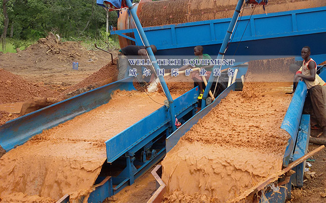 鼓動溜槽是在普通固定流槽的基礎(chǔ)上研究出來的一種新型砂金礦選設(shè)備。它綜合了固定溜槽和跳汰機(jī)的優(yōu)點,克服了固定流槽易板結(jié)的缺點和跳汰機(jī)產(chǎn)率大的不足,從而獲得了產(chǎn)率小而不易板結(jié)這一特點。