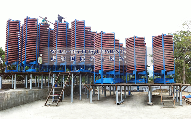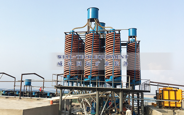玻璃鋼螺旋溜槽是綜合了螺旋選礦機(jī)、玻璃鋼螺旋溜槽、搖床、離心選礦機(jī)的特點,經(jīng)冶金部組織有關(guān)科研,設(shè)計、高校和礦廠等單位進(jìn)行鑒定通過,認(rèn)為該設(shè)備性能優(yōu)良,選別指標(biāo)先進(jìn),并獲得冶金部科技研究成果獎,現(xiàn)已在有色、黑色金屬礦山大量應(yīng)用。本設(shè)備適用于分選粒度0.3-0.02 毫米細(xì)料的鐵礦、鈦鐵礦、鉻鐵礦、硫鐵礦、鋯英石、金紅石、獨居石、磷乙礦、鎢礦、錫礦、鉭礦、鈮礦以及具有比重差異的其他有色金屬、稀有金屬和非金屬礦物體。