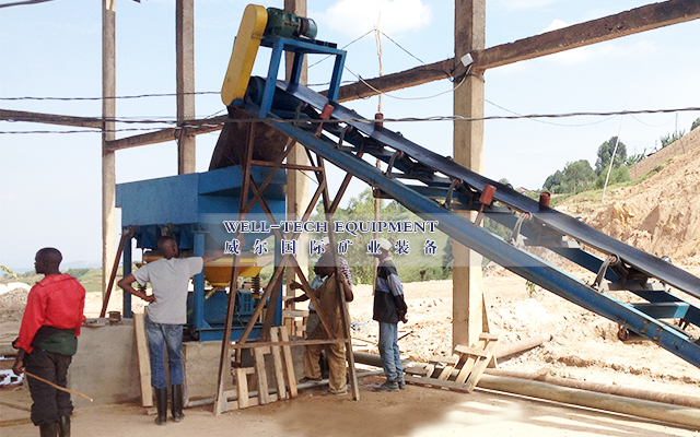 2、預(yù)選:將20~4mm礦石進(jìn)入重介質(zhì)旋流器預(yù)選,再經(jīng)一段棒磨后采用跳汰機(jī)預(yù)選,跳汰尾礦用2mm振篩篩除+2mm作為廢棄尾礦,-2mm進(jìn)入搖床選別。