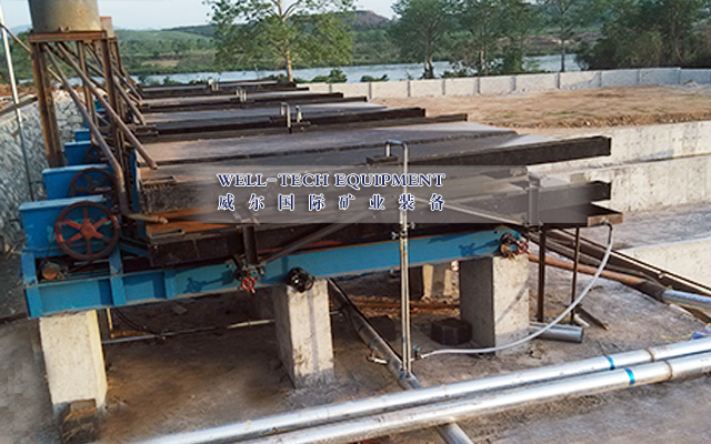 因為錫石在碎磨過程中會產(chǎn)生礦泥,所以分級脫泥是錫石重選前的一項重要準(zhǔn)備工作,對礦泥進(jìn)行去除干擾的同時也能控制入粒級,一般采用洗礦機(jī)、橫流皮帶溜槽、小口徑旋流器等設(shè)備作為脫泥設(shè)備。錫礦山常用的重選設(shè)備有跳汰機(jī)和搖床。