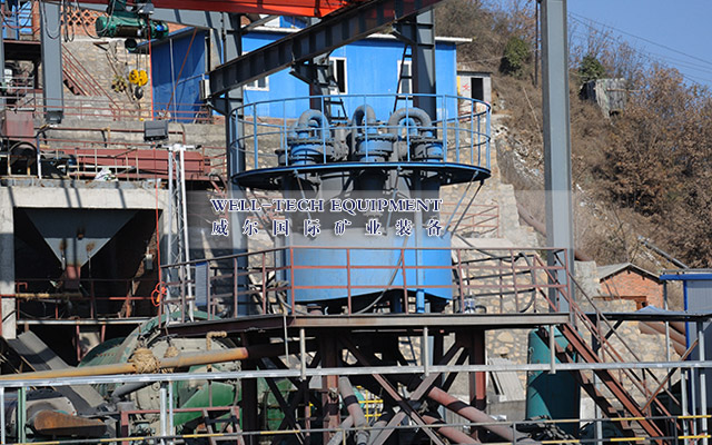 濃度10%-20%的選礦尾礦經(jīng)渣漿泵給入旋流器,旋流器溢流給入濃縮機,進行細粒級顆粒的濃縮,濃縮機溢流為澄清水,返回生產(chǎn)循環(huán)水回用。旋流器沉砂與濃縮機底流合并后濃度為45%-50%。