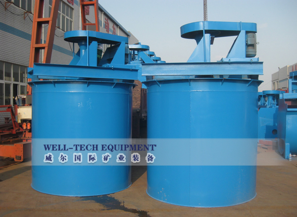 在槽内只安装搅拌叶轮和挡板,叶轮独特设计,搅拌均匀,混合效果好。适用于选矿厂内药剂的溶解制备与矿浆的储存及黄金...