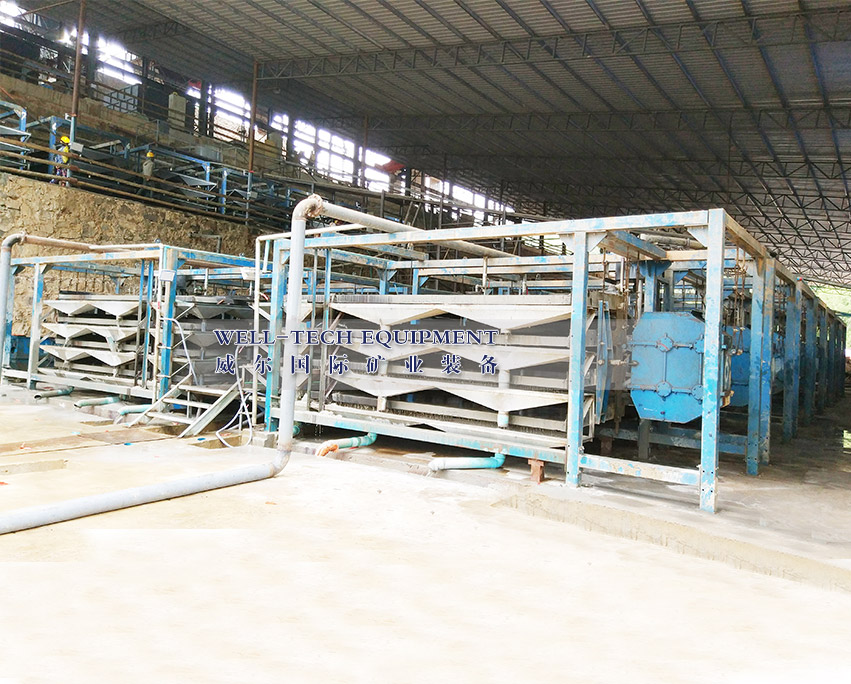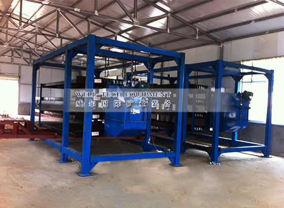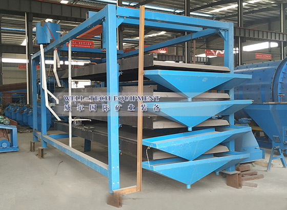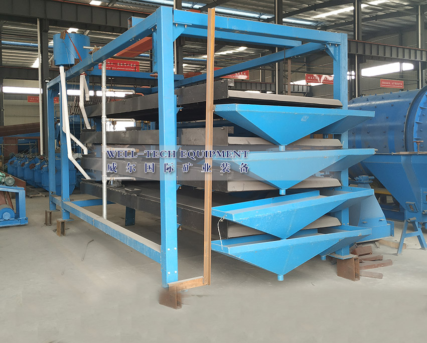 多層搖床在選礦設備中屬重力選礦的主要設備之一,多層搖床廣泛用于選別鎢、錫、鉭、鈮、鐵、錳、鉻、鈦、鉍、鉛、金等其他稀有金屬和貴金屬礦,也可用于煤礦。搖床可用于粗選、 精選、掃選等不同作業(yè),選別粗砂(2-0.5mm)、細砂(0.5-0.074mm)、礦泥(-0.074)等不同粒級。也可用于選別鐵、錳礦石和煤。當處理鎢、錫等礦石時,搖床的有效回收粒度范圍為2-0.022毫米。