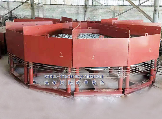 目前在國(guó)外液壓徑向跳汰機(jī)已普遍應(yīng)用在采礦船上作為粗選設(shè)備使用,用來(lái)選別砂金、錫、金剛石、鎢、錳、赤鐵礦等礦石。經(jīng)過(guò)多年的實(shí)踐證明,該跳汰機(jī)選礦效果良好。