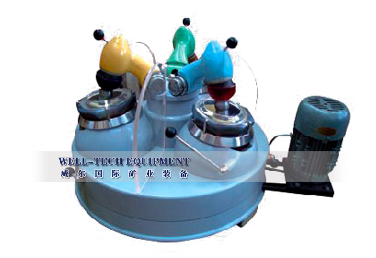 XFG型挂槽浮选机由下列主要部件组成:机架、电动机、调速器、主轴、叶轮机体、叶轮、皮带、紧固手柄...