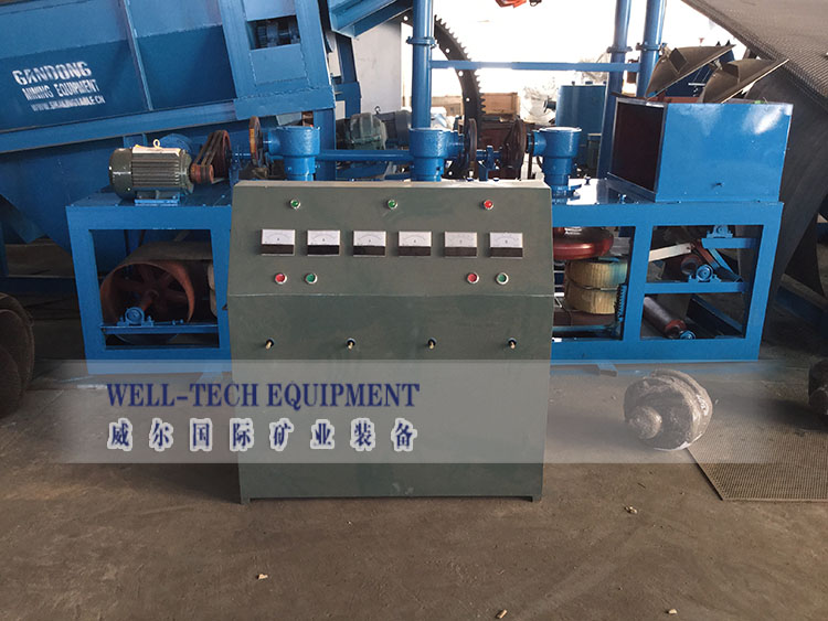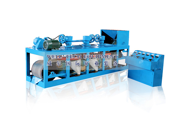 ③處理磁性強(qiáng)的礦物和精選作用軟弱的磁場(chǎng),處理磁性弱的礦物和掃選作業(yè)用較強(qiáng)的磁場(chǎng).