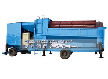 移动式滚筒筛由料仓,筒体,底架,轮胎,转盘,发电机,水泵,传动装置,控制柜和粘金槽组成,移动式滚筒洗矿机是可移动的新...