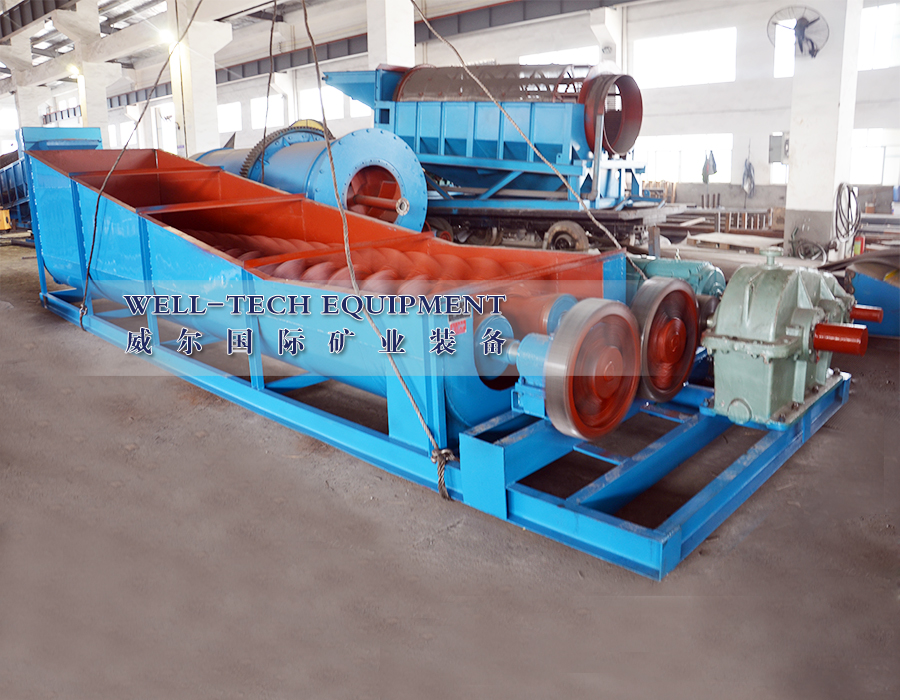 螺旋洗礦機主要用于洗錳礦、鐵礦、磷礦和其它礦物。用于錳礦、鐵礦及其它低品位礦物的淤泥、污漬的清洗和分離,處理量大,便于安裝、操作簡單,成本低,效率高。